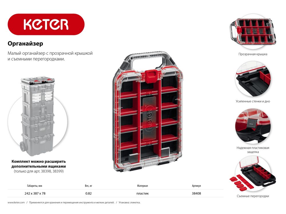 KETER STACKNROLL, 242 х 388 х 78 мм, (10), Пластиковый органайзер (38408)-324