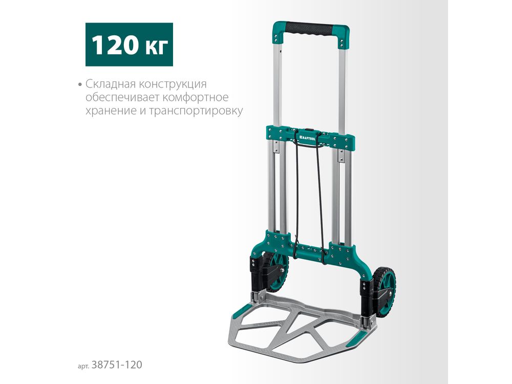 ХозтоварыТележка хозяйственная KRAFTOOL ATLANT до 120кг, каркас и платформа из алюминия, платформа 48,5 х 35см, колёса d18см, вес 6,9кг, складная хозяйственная тележка (38751-120)-1467