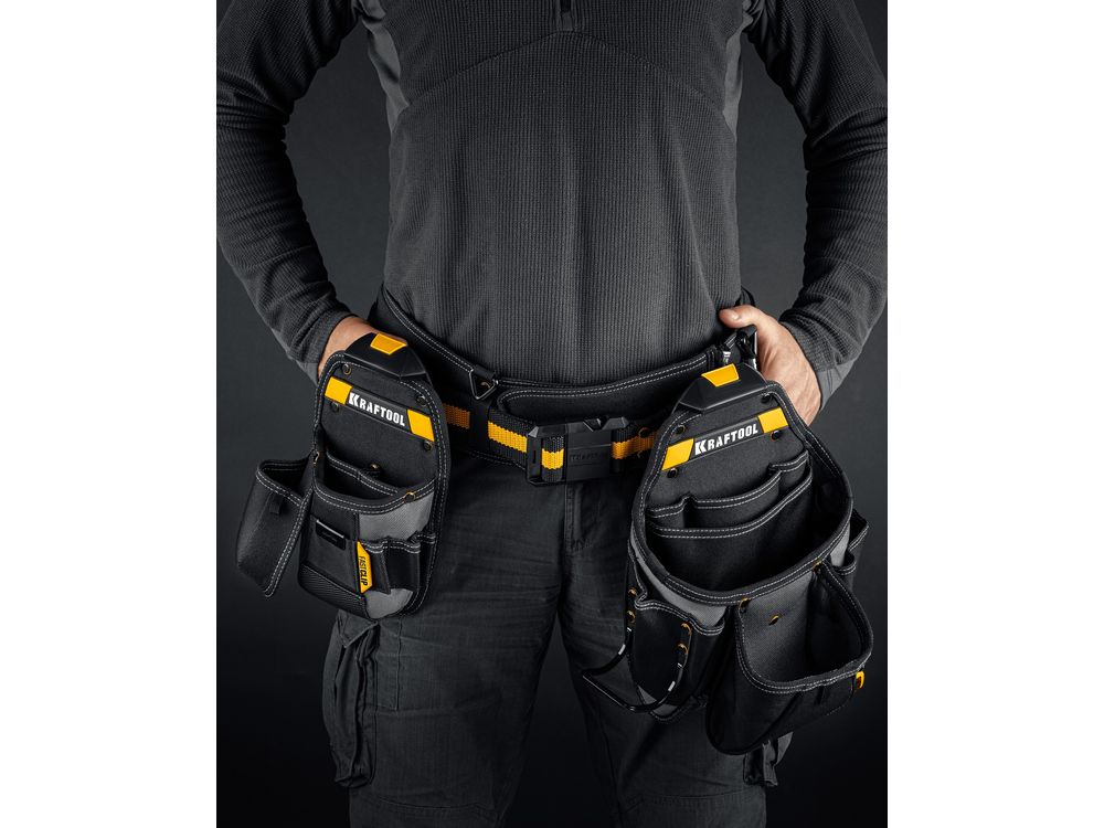 Профессиональные пояса и сумки KRAFTOOL KRAFTBUILT с системой быстросъёмного крепежа предлагают уникальную возможность организации рабочего процесса. Используйте только только тот инструмент, который нужен именно сейчас.