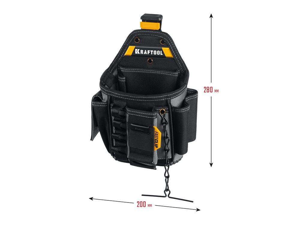 KRAFTOOL KP-13E с быстросъёмным креплением FastClip, 13 карманов и петель, 280 х 200 мм, поясная сумка (38772)
