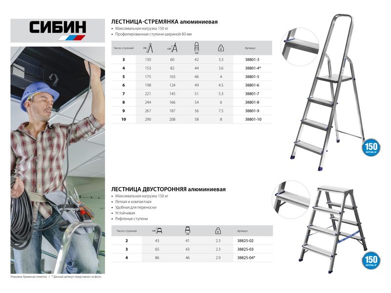 Лестницы СИБИН предназначена для выполнения различных хозяйственных работ. Надежная конструкция в сочетании с высококачественными материалами обеспечивают легкость и удобство в эксплуатации.