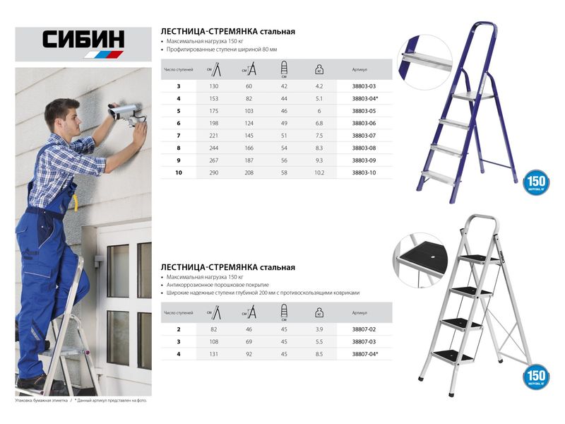 Лестницы СИБИН предназначена для выполнения различных хозяйственных работ. Надежная конструкция в сочетании с высококачественными материалами обеспечивают легкость и удобство в эксплуатации.