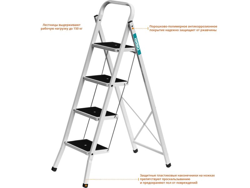 Купить Лестница-стремянка стальная c широкими ступенями, 4 ступени, СИБИН