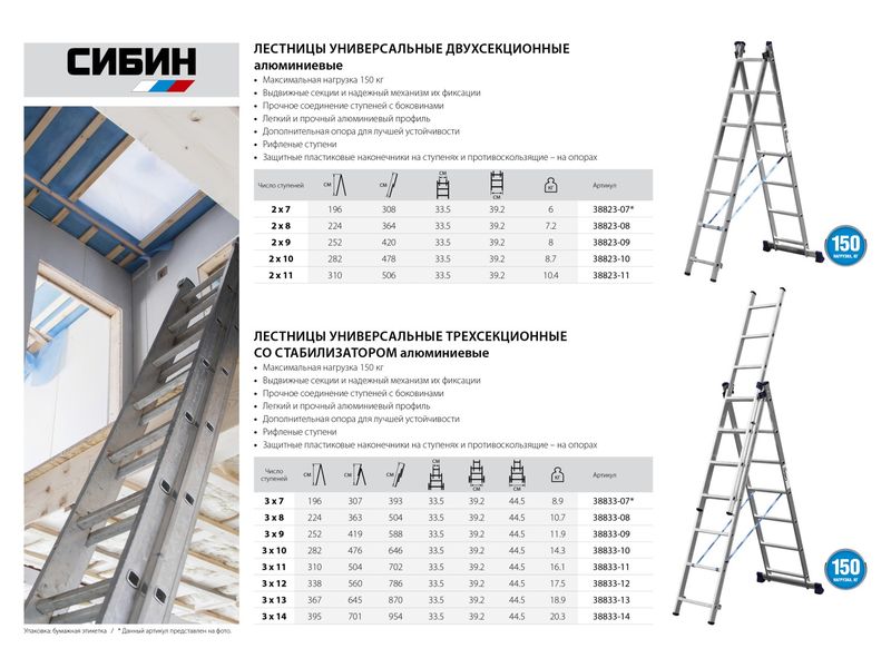 Лестницы СИБИН предназначена для выполнения различных хозяйственных работ. Может использоваться как стремянка и как приставная раздвижная лестница. Надежная конструкция в сочетании с высококачественными материалами обеспечивают легкость и удобство в эксплуатации.