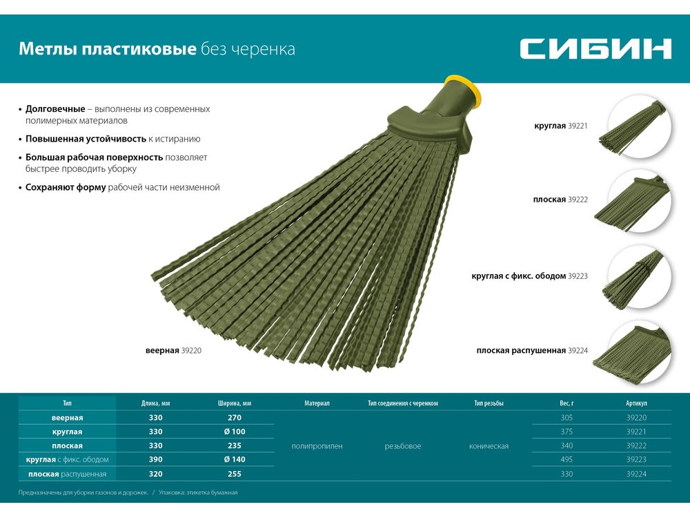 Купить СИБИН 420 х 110 мм, полипропилен, коническое резьбовое соединение, круглая, пластиковая метла (39221)