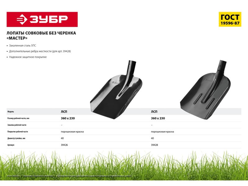 Купить Лопата "МАСТЕР" совковая с ребрами жесткости ЛСП, без черенка, ЗУБР