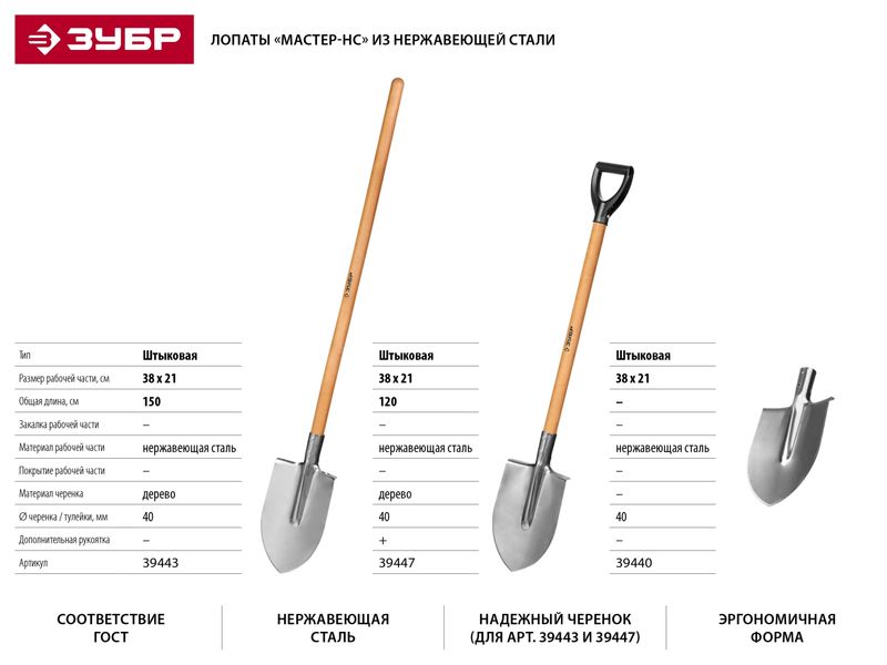 Купить Лопата "Мастер-НС" штыковая из нержавеющей стали, без черенка, ЗУБР