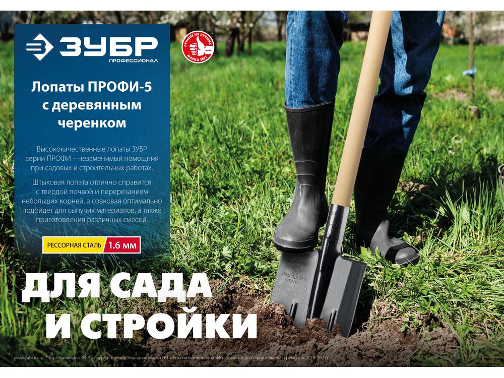 Купить Совковая лопата с ребрами жесткости ЗУБР ПРОФИ-5, ЛСП, деревянный черенок, 1450 мм
