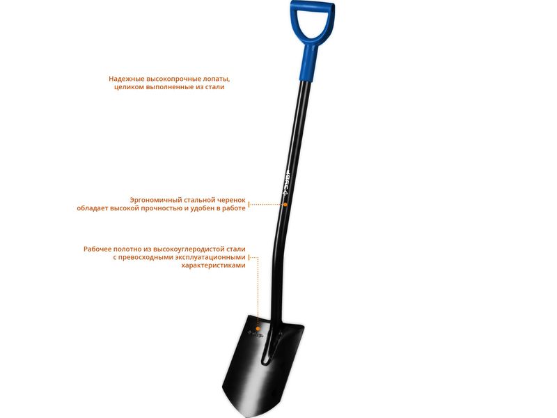 Штыковая лопата является является простым и универсальным инструментом для широкого фронта работ, от перекопки твердых почв до перерезания небольших корней,