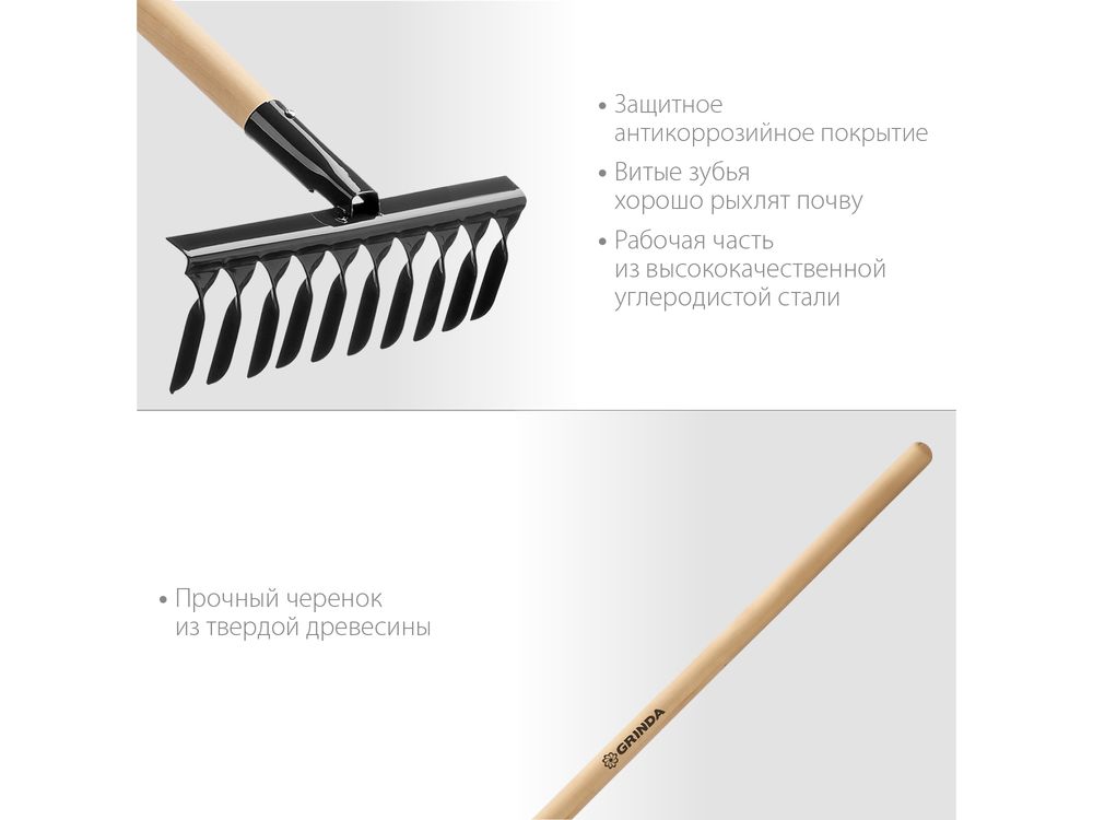Купить GRINDA 10 витых зубьев, 320х95х1300 мм, грабли садовые, с деревянным черенком