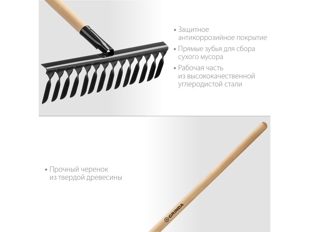 -Витые зубья хорошо удерживают сухой мусор на рабочей поверхности.,