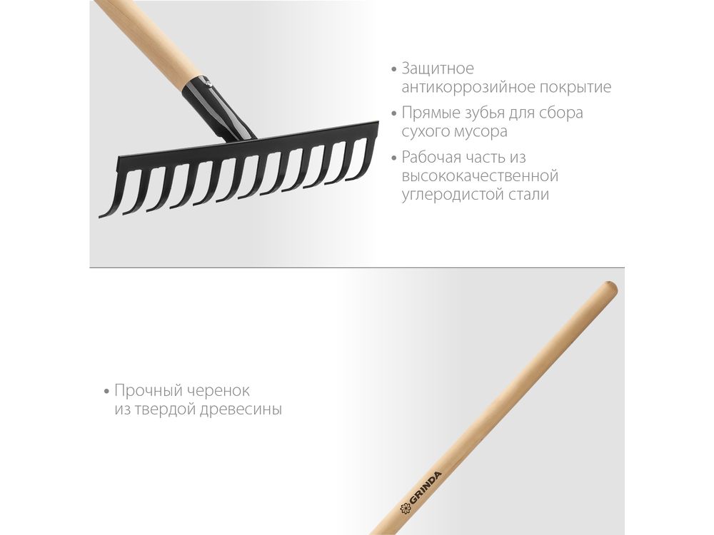 GRINDA 12 прямых зубьев, 310х80х1300 мм, грабли садовые, с деревянным черенком