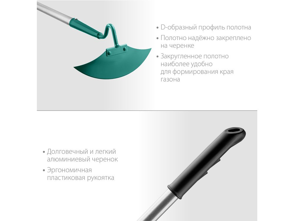 Лёгкий и прочный алюминиевый черенок позволяет затрачивать значительно меньше усилий во время работы и увеличивает срок службы изделия