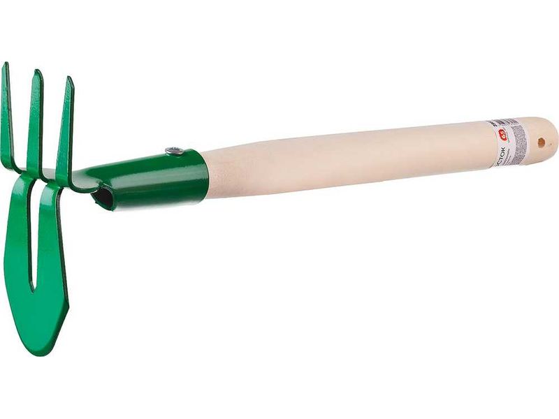 Мотыга-рыхлитель РОСТОК с деревянной ручкой, лопатка+3 зуба гнутая, ширина рабочей части - 70ммСледующий товар