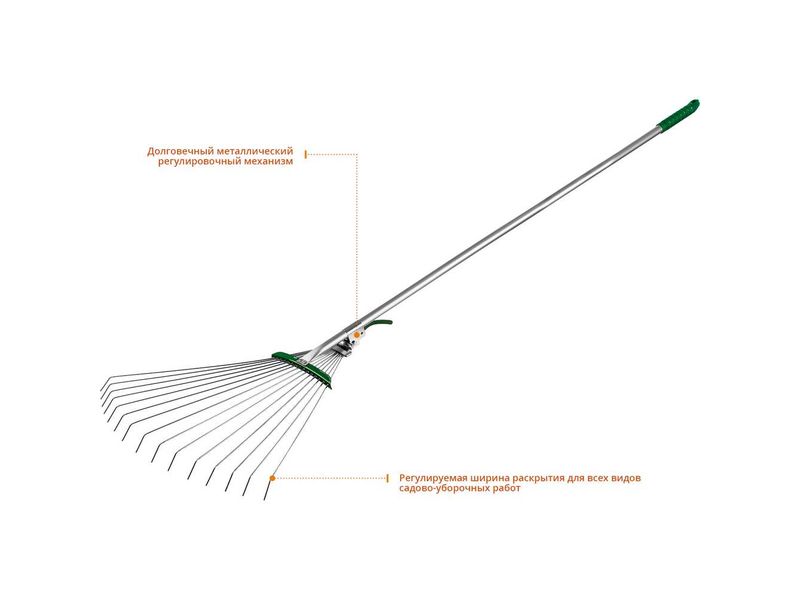 Купить POCTOK РВ-15 грабли веерные с алюминиевым черенком, регулируемые, длина 1180 мм