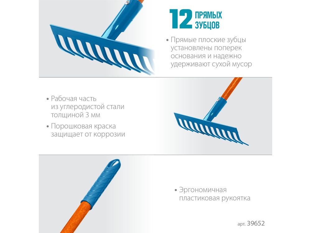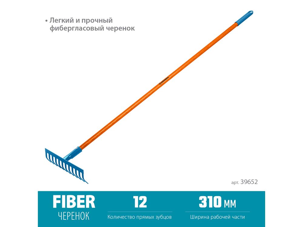 Купить GRINDA PR-12S FIBER, 12 прямых зубцов, размеры 310 х 80 х 1500 мм, углеродистая сталь, фиберглассовый черенок, садовые грабли, PROLine (39652)