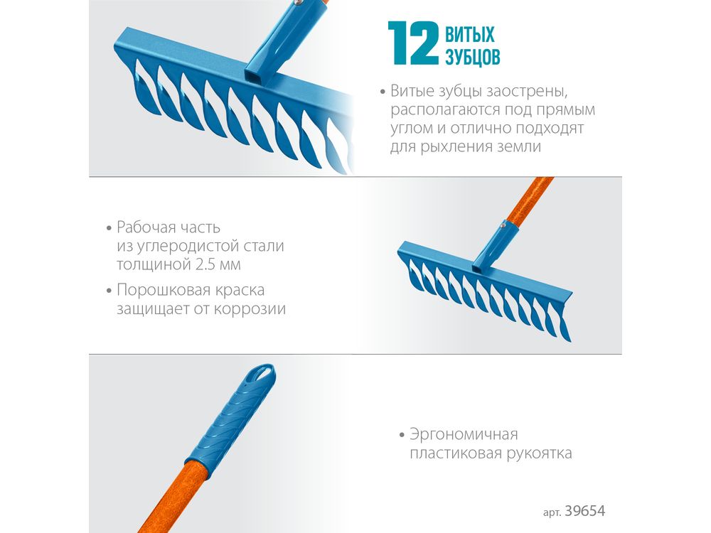 Купить GRINDA PR-12T FIBER, 12 витых зубцов, размеры 380 х 100 х 1530 мм, углеродистая сталь, фиберглассовый черенок, PROLine (39654)