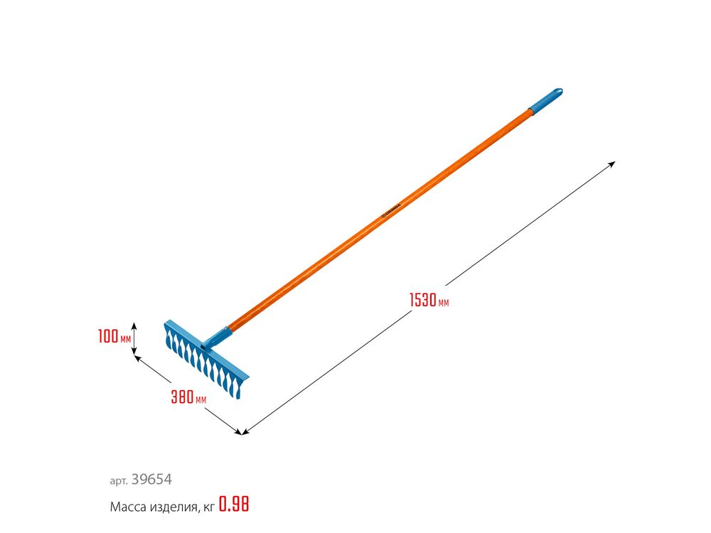 GRINDA PR-12T FIBER, 12 витых зубцов, размеры 380 х 100 х 1530 мм, углеродистая сталь, фиберглассовый черенок, PROLine (39654)