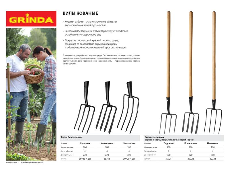 Купить Вилы GRINDA кованые, садовые, с черенком, 180х220x1300мм
