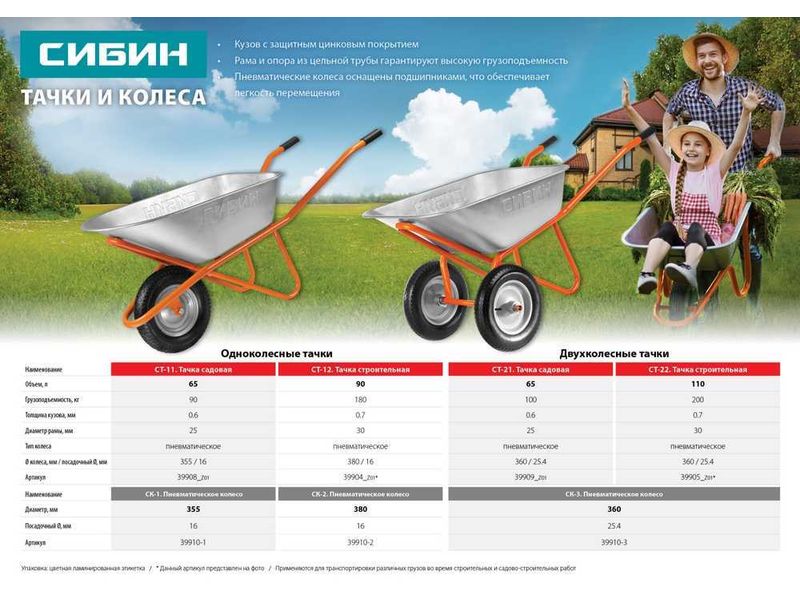Отличается прочной конструкцией, большой грузоподъемностью, хорошей маневренностью и долговечностью. Модель оснашена стальными подшипниками. Применяется для транспортирования различных грузов во время проведения садовых работ.