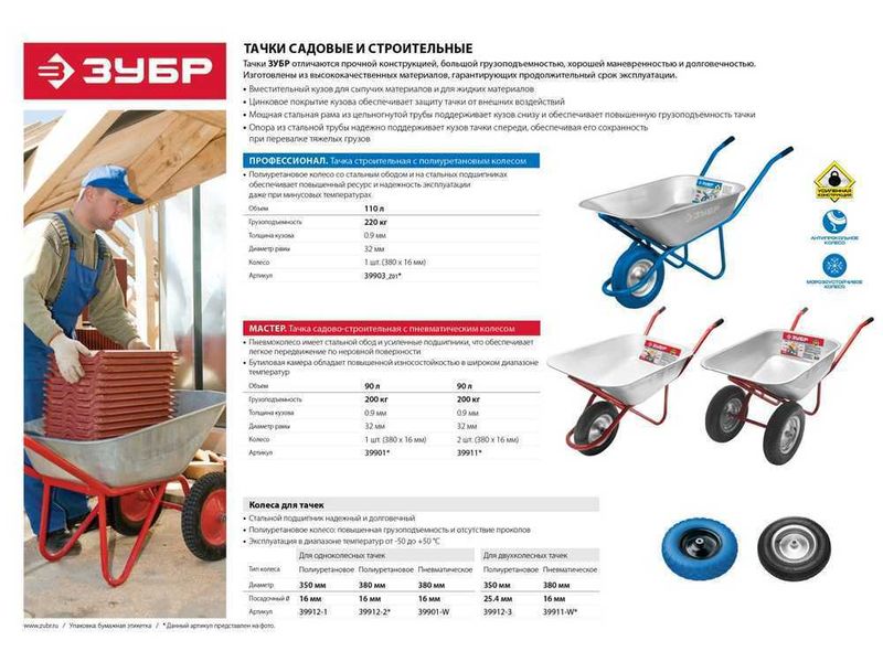 Отличается повышенным ресурсом и надежной эксплуатацией даже при минусовых температурах. Обеспечивает легкое перемещение грузов и отличную маневренность тачек. Предназначено для выполнения ремонтных работ садово-строительных тачек.