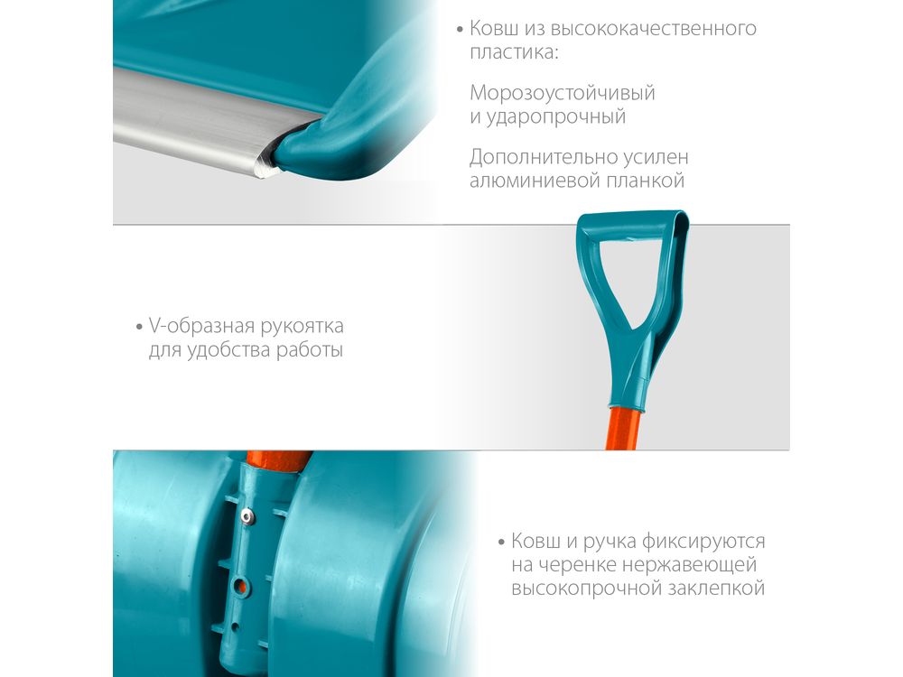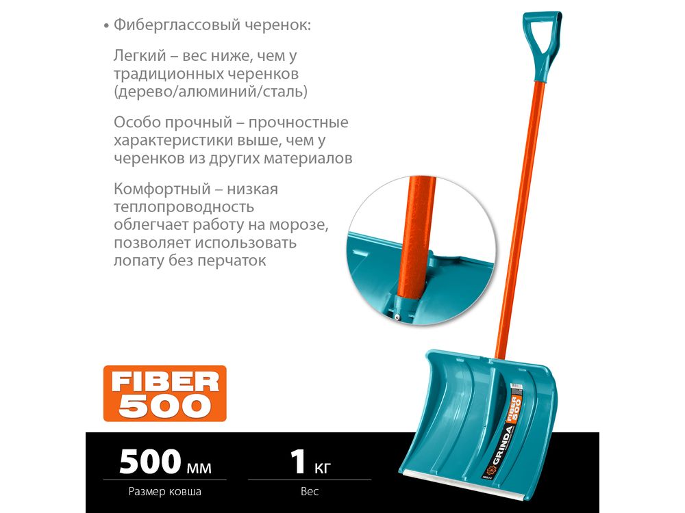 Снеговая лопата GRINDA PROLine FIBER-500 500 мм пластиковая с алюминиевой планкой, особопрочный легкий черенок из фибергласса, V-ручка