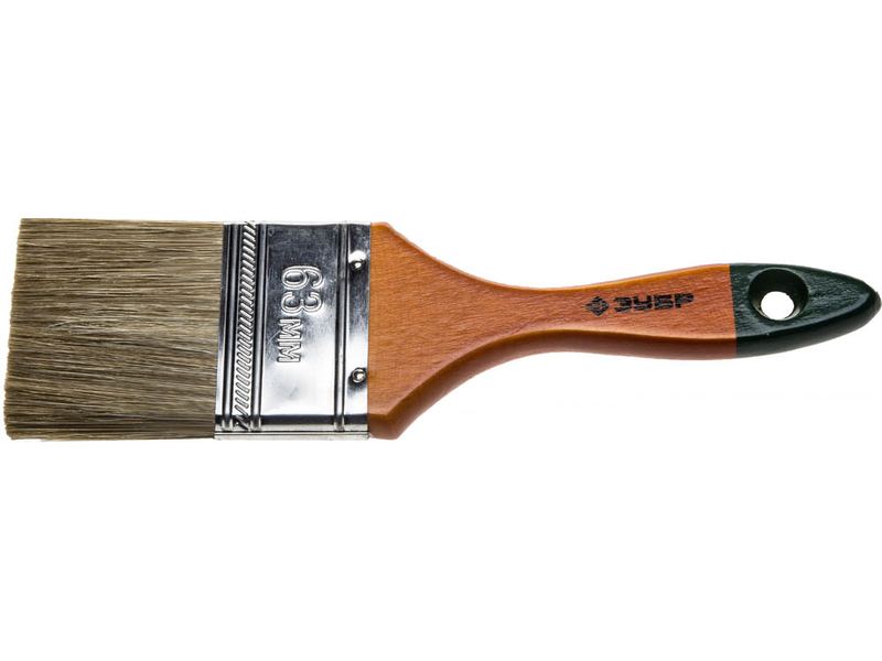 Строительно-отделочный arrow Кисть плоская с деревянной ручкой arrow Кисть плоская Зубр ЛАЗУРЬ-МАСТЕР, смешанная щетина, деревянная ручка, 63мм-271