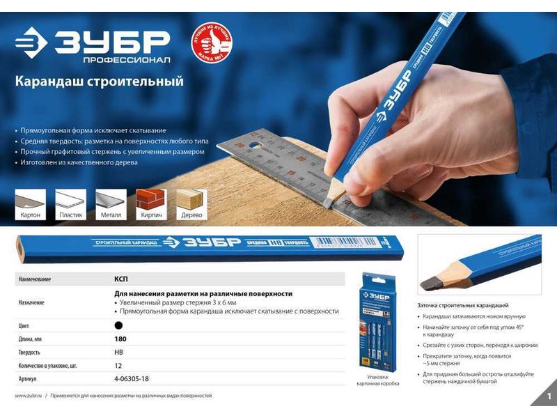 ЗУБР КСП 180 мм профессиональный строительный карандаш-932