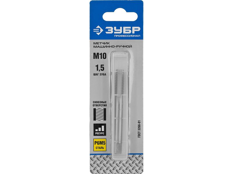 Купить Метчик ЗУБР "ПРОФЕССИОНАЛ" машинно-ручной, одинарный для нарезания метрической резьбы в сквозных отверстиях, М10х1,5