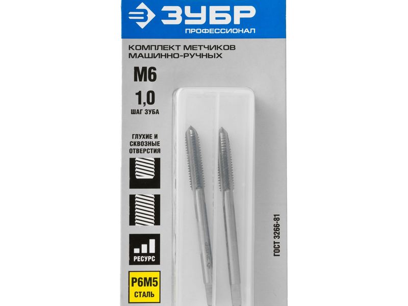 Метчики ЗУБР ПРОФЕССИОНАЛ машинно-ручные, комплектные для нарезания метрической резьбы в сквозных отверстиях, М6х1,0, 2шт