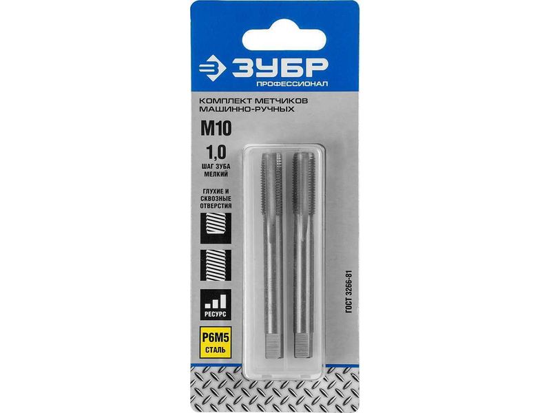 Купить Метчики ЗУБР ПРОФЕССИОНАЛ машинно-ручные, комплектные для нарезания метрической резьбы с мелким шагом, М10 x 1,0, 2шт