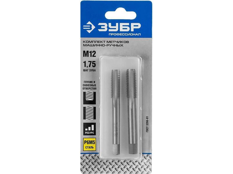 Купить Метчики ЗУБР ПРОФЕССИОНАЛ машинно-ручные, комплектные для нарезания метрической резьбы в сквозных отверстиях, М12х1,75, 2шт