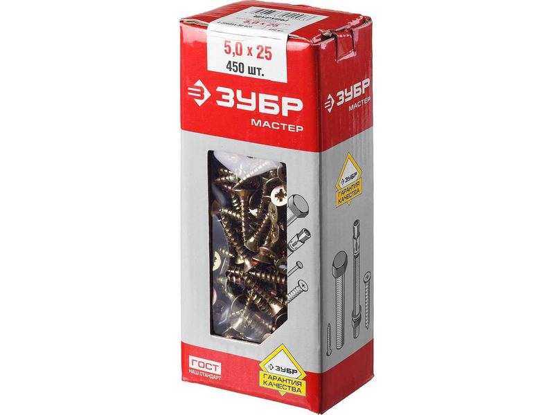 Шурупы ЗУБР "МАСТЕР" по дереву желтопассивированные, 5.0x25мм, 450шт