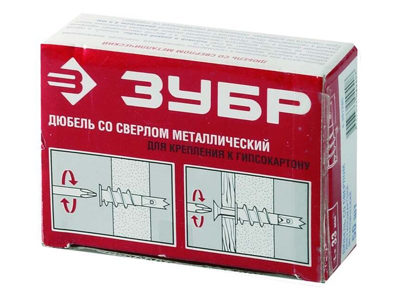Купить Дюбель ЗУБР со сверлом, для гипсокартона, металлический, ТФ 5, 33мм, 46шт Цена: 805,00 |