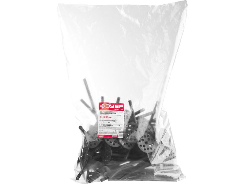 Купить Дюбель ЗУБР "МАСТЕР" для изоляционных материалов полипропиленовый, металлический стержень, 10 x 200 мм, 50 шт