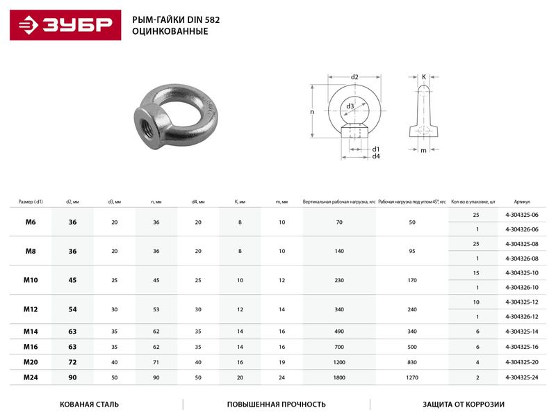 Рым-гайки изготовлены из кованой стали, что обеспечивает их повышенные прочностные характеристики;