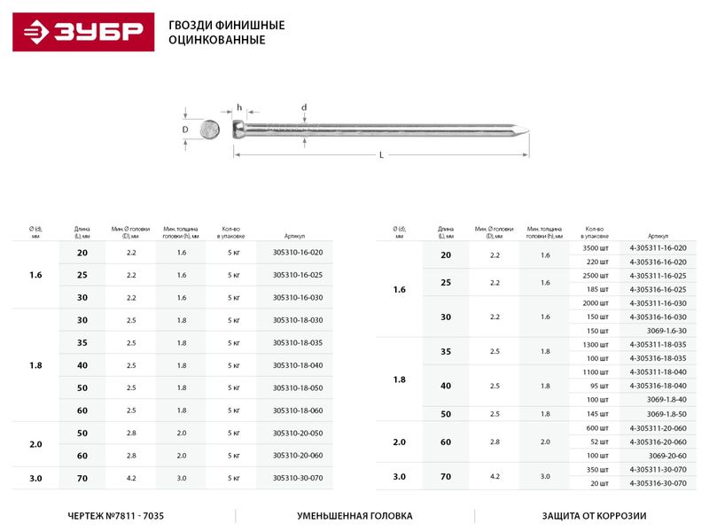 Уменьшенная головка позволяет утопить финишный гвоздь в материале, благодаря чему он становится практически незаметен
