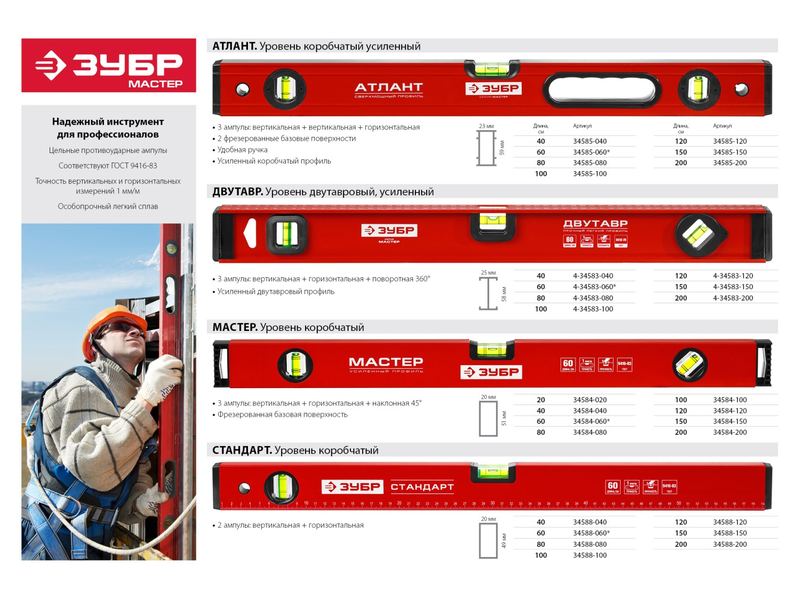 Уровень ЗУБР МАСТЕР двутавровый, усиленный, 3 глазка (один поворотный), 150см