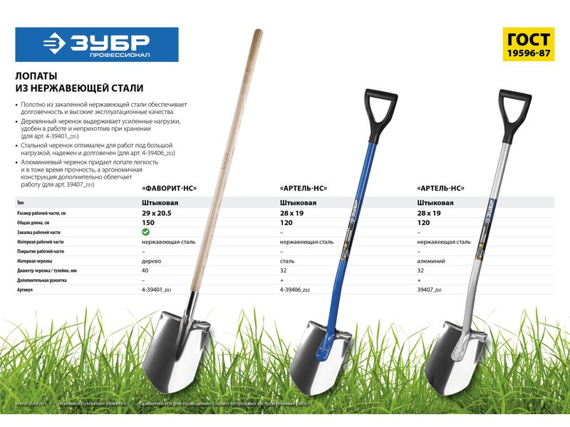 Купить Лопата Артель-НС штыковая из нержавеющей стали, эргономичный стальной черенок, с рукояткой, ЗУБР Профессионал