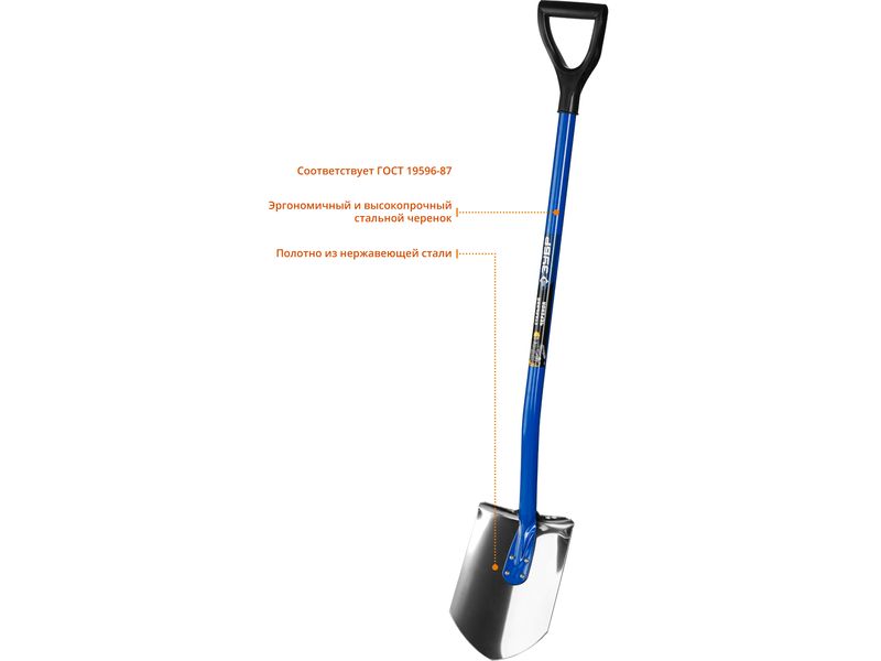 Лопата Артель-НС штыковая из нержавеющей стали, эргономичный стальной черенок, с рукояткой, ЗУБР Профессионал
