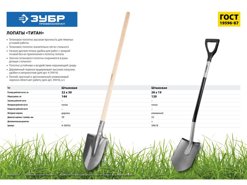 Лопата ЗУБР "ЭКСПЕРТ" ТИТАН штыковая с черенком, 220х300x1440мм