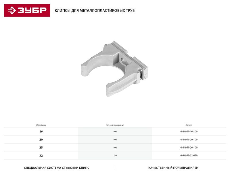 Скоба-держатель ЗУБР для металлопластиковых труб, пластмассовая 25мм, 100шт