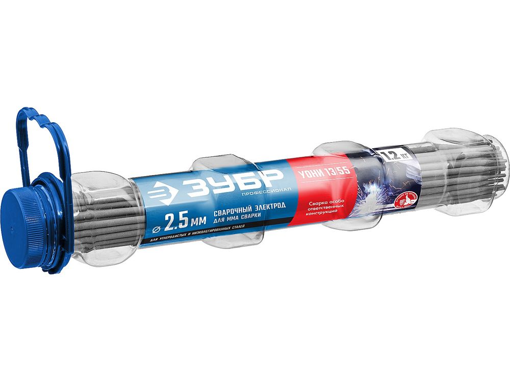 ЗУБР электрод сварочный УОНИ 13/55 с основным покрытием, для ММА сварки, d 2.5 х 350 мм, 1,2 кг в ПВХ тубе, Профессионал. |