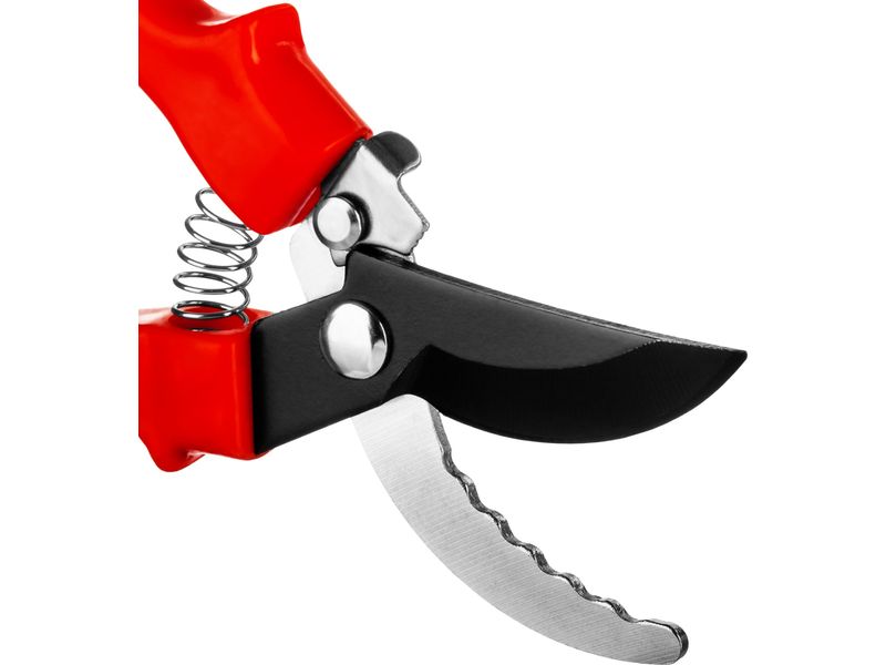 Зазубренное нижнее лезвие обеспечивает удобный захват веток при резе.