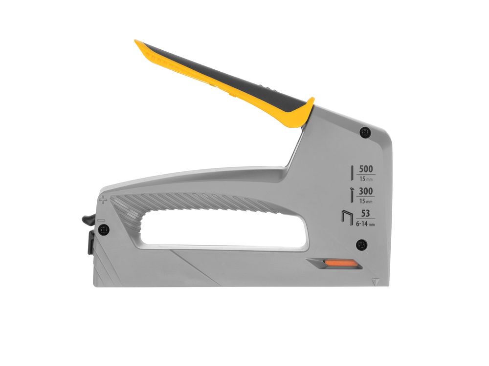 Степлер мебельный, пластиковый корпус, тип 53, 6-14 мм, тип 300, 15 мм, тип 500, 15 мм
