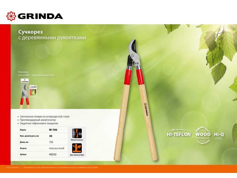 W-700 плоскостной сучкорез с деревянными рукоятками, GRINDA-491