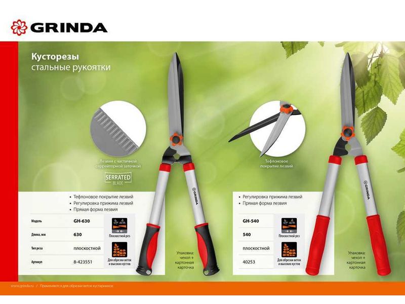 Кусторезы GRINDA прочны и долговечны. Удобны в работе, режут легко.