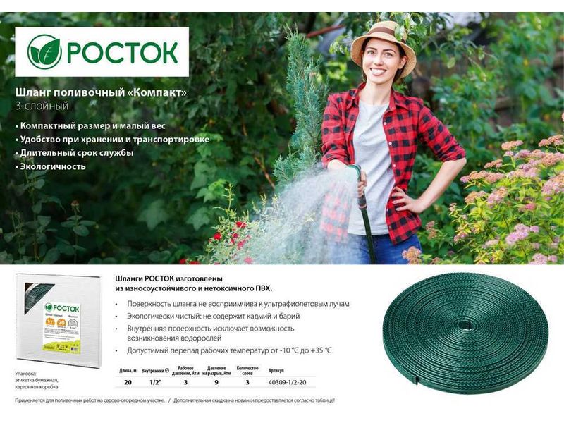РОСТОК КОМПАКТ 1/2", 20 м, шланг поливочный, трёхслойный, в коробке