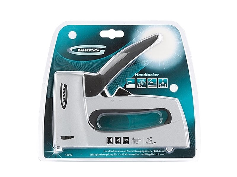 Мебельный степлер Gross 41002 в алюминиевом корпусе, с функцией регулировки силы удара, совместим со скобами типа 13 и 53 размером 6-16 мм и гвоздями типа 300 размером 16 мм. Инструмент используют для фиксации на деревянном основании оргалита, фанеры, ДВП, ДСП, пленки, утеплителя и других листовых материалов. Инструмент будет полезен при сборке и обшивке мебели, укладке ковровых покрытий и изоляционных материалов, выполнении багетных работ. Подходит для профессионального применения.
