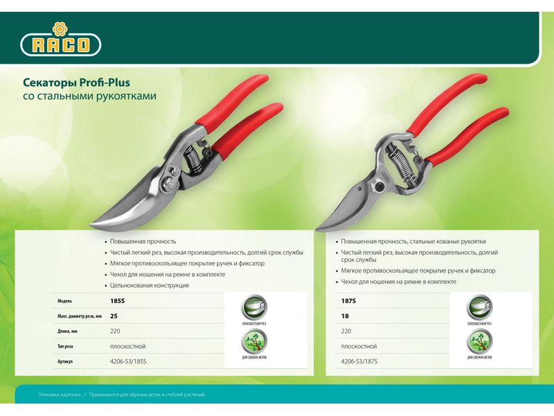Усиленные секаторы RACO «Profi Plus» в традиционном и привлекательном дизайне для садоводов-профессионалов. Лезвия инструментов изготовлены из высококачественной нержавеющей стали, что гарантирует превосходный результат и длительный срок службы.